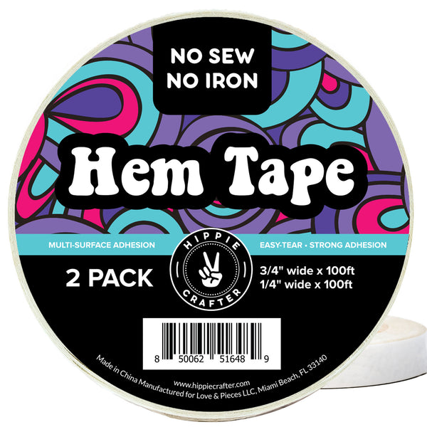 1/4" & 3/4" EXTRA STRONG FABRIC ADHESIVE: Our no iron hem tape delivers permanent hold but can be removed. Ideal fabric tape for hemming pants, dresses, or curtains. Hemming tape for clothes, hemming tape for pants, or even temporary fabric fixes.