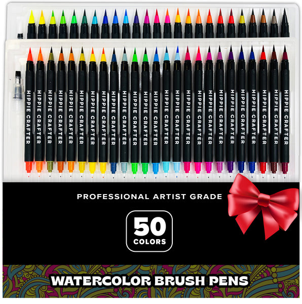 Our premium Watercolor Brush Pens are ultra-pigmented, easy to work with and are great for drawing, painting, calligraphy and more. Our watercolor brush marker set includes rich and beautiful colors, plus water pen for blending and offer more precision and control than traditional watercolor paint with less mess. These water-based, non-toxic watercolor markers for artists feature flexible brush tips and can be used to create a variety of effects including gradients, fine to thick lines, dry techniques & more! These professional watercolor pens work on virtually any paper and are great with our Hippie Crafter Watercolor Paper! We are a small family owned American business committed to producing professional grade art supplies designed for free-spirited crafters. We proudly stand behind the quality of all our products and strive to set ourselves apart by providing exceptional customer service. If you have any questions on the details of our products or how to use them, just reach out! We are here to help out our fellow crafters in any way we can.
